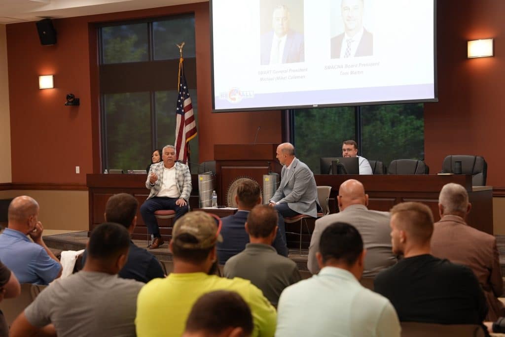 On July 17, 2025, SMART General President Michael Coleman and SMACNA President Tom Martin hosted the first-ever BE4ALL Town Hall at the Local 33 union hall in Cleveland, Ohio, discussing the initiative and taking questions from the more than 160 in-person attendees and viewers across North America watching via livestream.