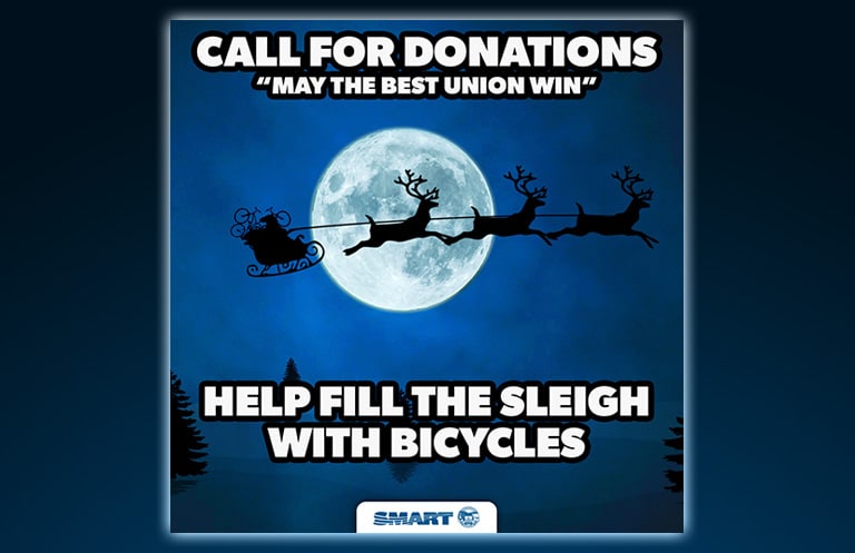 SMART-TD members are well-known for bringing a little extra cheer to the holiday season, and Local 427 (McComb, Mississippi) is turning that tradition into a friendly competition this year. SMART-TD conductors are competing with engineers from the Brotherhood of Locomotive Engineers and Trainmen (BLET) to see who can donate the most bikes.