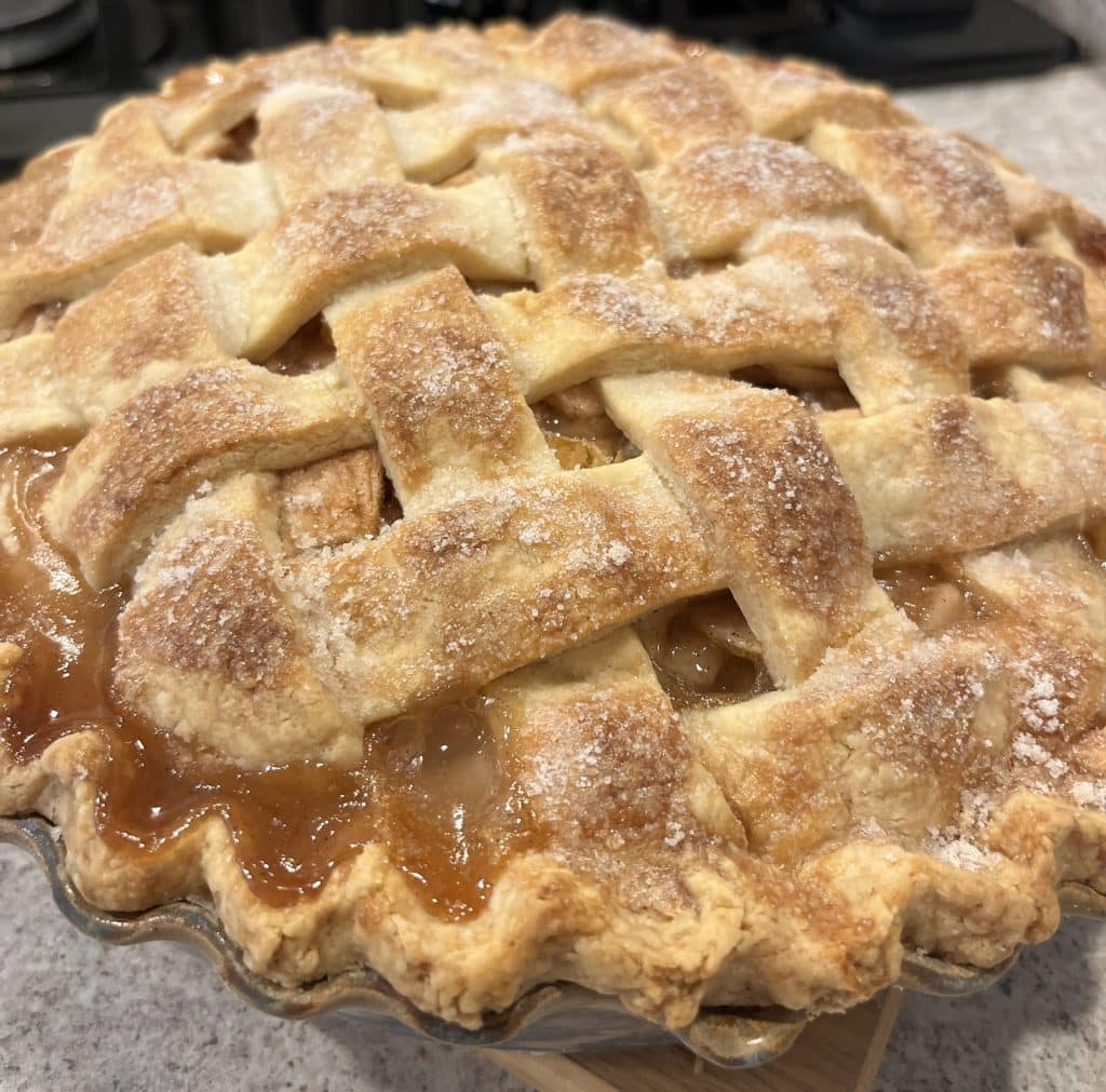 “I came from a large family on my mother’s side, I had 21 cousins. The holidays were always a big deal when it came to cooking. Alma, my grandmother never wanted anyone to go without. She would make sure that everyone had their favorite pie for the holidays. She would bake about 6-8 pies. When she passed, so did her tradition of pie making. My mother hates baking anything, and my wife despises the judgement that revolves around people’s opinions of pie crust. So, I took it upon myself to learn to bake pies. I weave my pie crusts because I always thought it looked cool and didn’t understand why people didn’t do it; now I know. I’ve been baking pies for just under 20 years now, that’s my job during holidays and my kids request pie for their birthdays. Keep traditions alive.”