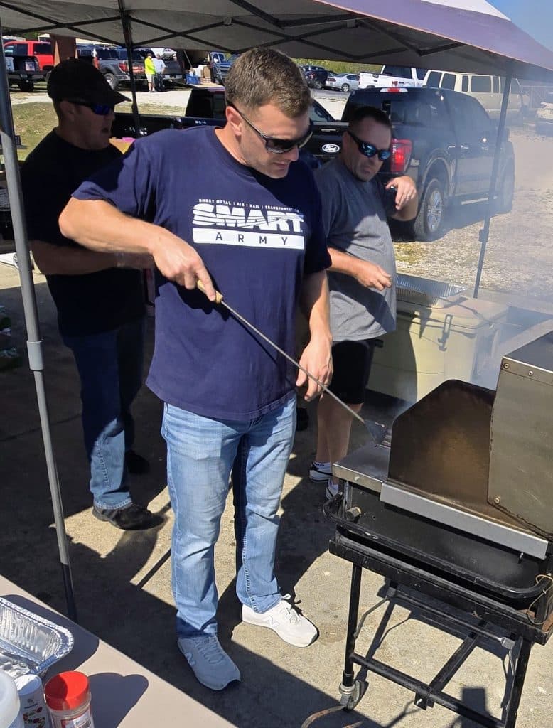 “I was blessed to spend a beautiful Sunday afternoon with my SMART union brothers from Local 2 and Local 36, feeding hungry veterans at this year’s Fishing For Freedom,” said Local 2 sister Pamela Blackmore.